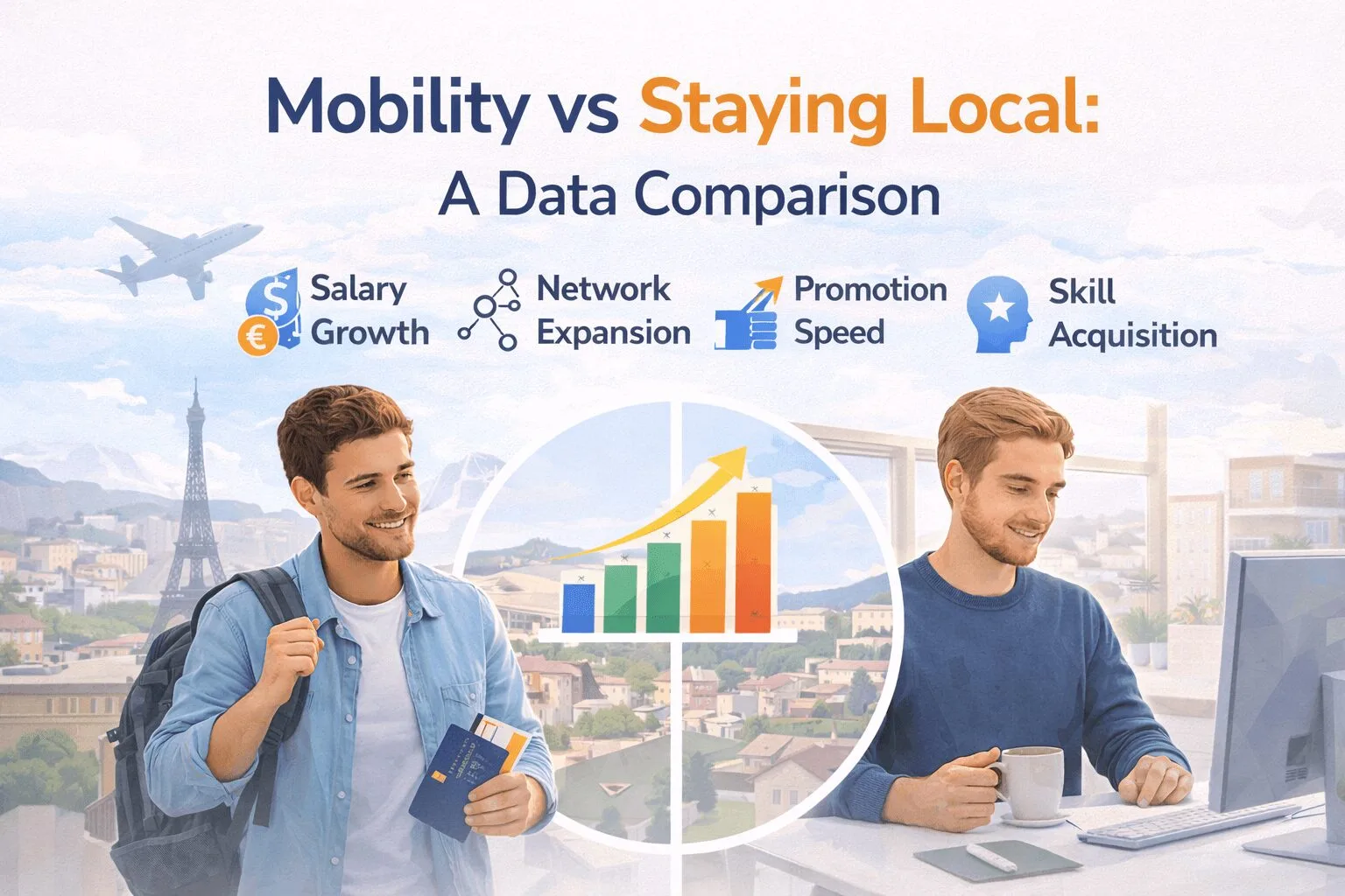 The debate between international mobility and staying local for work opportunities is not a new one. However, with the changing landscape of work, the rise of digital transformations, and the evolving global job market, it’s time to look at the facts. Is going abroad for an internship, education, or job still worth it? Let’s dive into the data and see how mobility compares to staying in your local job market when it comes to:
